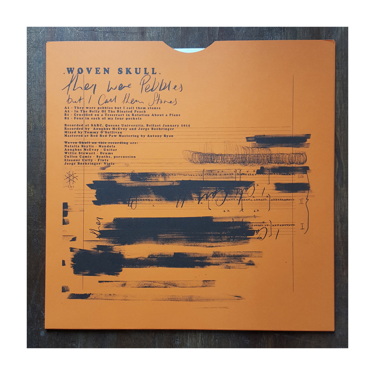 Based in the middle of a woodland in the sparse countryside of Co Leitrim, Ireland, the core trio that make up Woven Skull (alongside an extended family of guests and collaborators) explore the limits of repetition, minimal instrumentation and free improvisation that stretches the breadth between delicate silences and harsh cacophony with continuously retaining traditional elements of song and musicality. On this release, which was recorded in SARC in Queen’s University Belfast, the group used the vast acoustics of the theatre (designed by Stockhausen) to push the of flute, mandola, viola, percussion, guitar and synth into improvised pieces of light melodies and blasts or ecstatic noise.